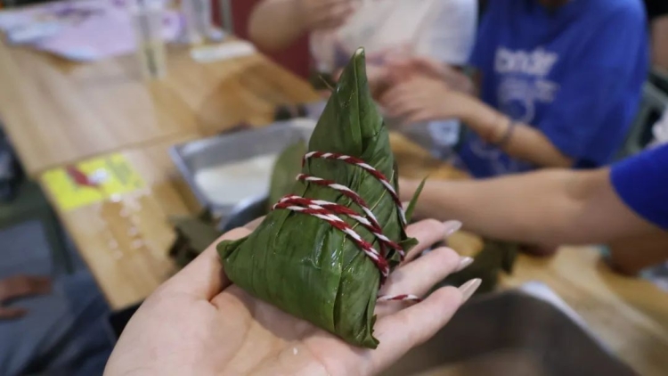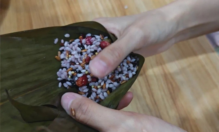 大家互相分享包粽子的经验,相互示范,相互帮助,卷叶、装米、压馅、捆绳……每一次成功的包裹,都伴随着一阵欢呼和笑声,那是劳动带来的喜悦,也是对传统文化传承的自豪。