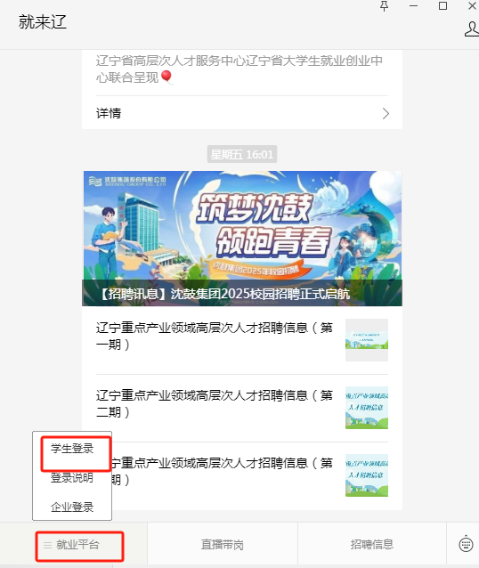 ■档案被派遣到省内的学生,可搜索公众号“就来辽”,关注后点击“就业平台-学生端”后进入学生端主页面,点击“我的”进行登录(如提示未注册,需先在“辽宁省统一身份认证平台”进行注册),点击“档案查询”可以查看档案接收单位信息和转出转入情况。