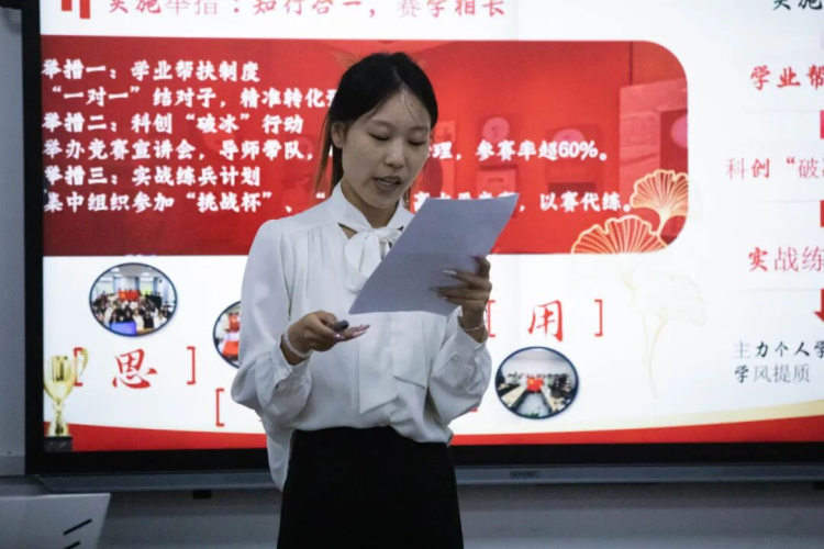 各班围绕班级学风建设整体规划、具体措施、建设亮点、学风成效、科研竞赛成果、存在的问题不足及下步改进措施等方面,以班级代表答辩、PPT材料展示、播放宣传视频的方式讲述班级故事,展现班级风采。