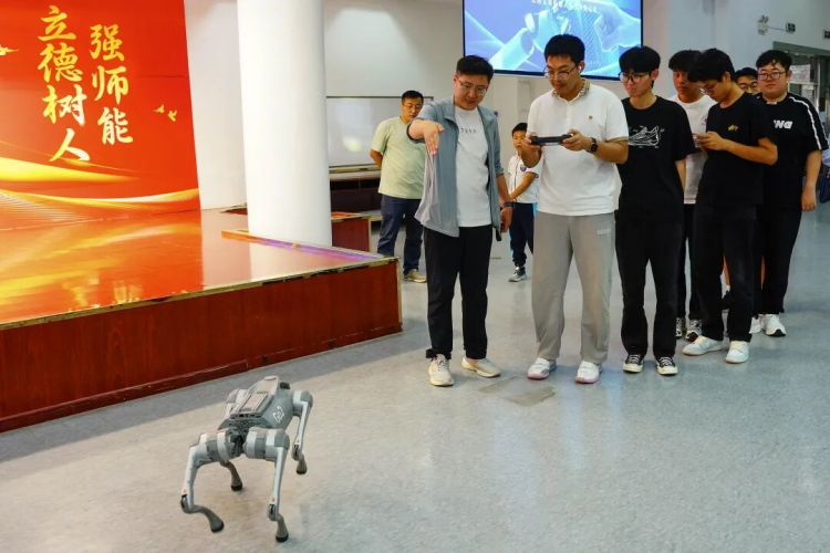 为增强互动体验,石林工程师特别设计宇树G1人形机器人与Go2四足机器狗展示专区,科技的魅力引发师生浓厚的兴趣,大家兴致勃勃,跃跃欲试。在工作人员引导下,师生亲手操作完成指令动作,并近距离观察机器人和机器狗的反应速度和达成情况。通过面对面学习,抽象的技术原理转化为可感知的现实应用,不少同学表示这样的体验加深了对机器人技术的理解与兴趣。