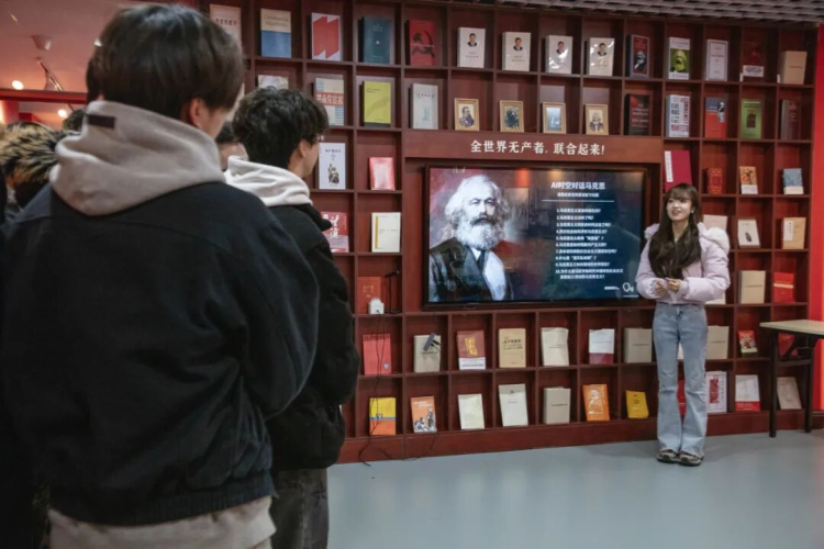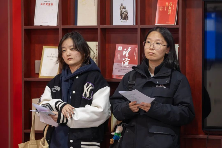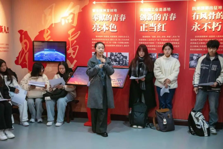 从10月起,党委学生工作部与马克思主义学院联合组织,引领2025级新生分批次参观展厅。“历史逻辑+数字孪生”的展陈模式,“理论溯源-实践淬炼-时代传承”的三维叙事主线,“课堂学理论,展厅悟精神,一线强本领”的红色育人链条吸引了到访的学生们。他们专注聆听专业教师深度讲解,并根据研学手册指引完成“沉浸式观展记录”打卡任务,开启一场深刻的思想启迪之旅。