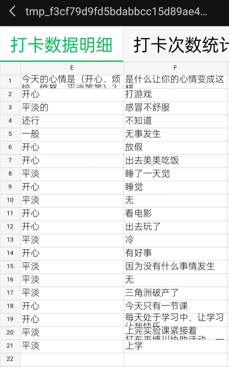 11月聚焦期末备考压力,搭建“每日情绪打卡+期末压力调研”双维度工作机制。通过线上小程序发起情绪打卡,每日统计班级情绪状态,如焦虑、烦躁、平和等;设计期末备考压力调查问卷,围绕复习效率、焦虑程度、睡眠质量等维度调研,回收有效问卷,梳理出“复习规划混乱”“担心挂科”等核心困扰。