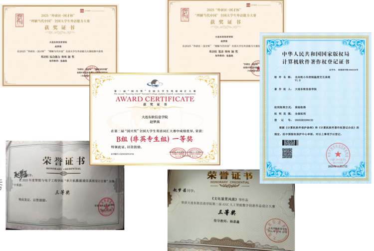 大一学年寝室成员平均成绩达 83.5 分,2人学年综合排名前5%。联合参与三个大创,涵盖学科调研、创新实践等方向。成员获得2025全国大学生高新技术竞赛计算机能力挑战赛Python赛道一等奖、2025全国大学生高新技术竞赛计算机能力挑战赛 Java赛道一等奖、2025数据获取与预处理大赛二、三等奖等诸多竞赛奖项。